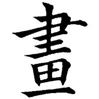 画 - Shortening to the lower part based on the idealized form from Shuowen Jiezi. Modern simplified form in China and Japan.
