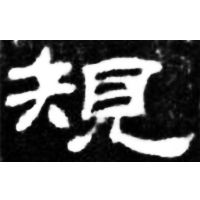 Shortened form of 𭑌 (depiction of a person holding a carpenter’s square for {矩} *kʷ(r)aʔ “carpenter’s square”) + probably shortened form of ♪𧠹 *KᵂE (⿱目人 LOOK (> 見) + ♪圭 *KᵂE for {窺} *kʷʰe “to peep”).