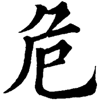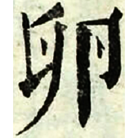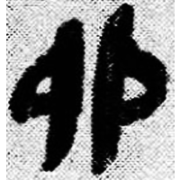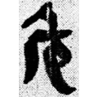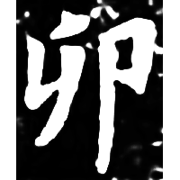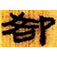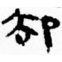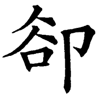 Depiction of a kneeling person (卩) whose head is being lifted up by a hand.