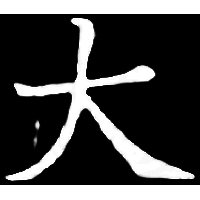 Depiction of an adult human figure. Initially was created for the word {夫}, but was also used for {大}. Later after the glyph 夫 was created, 大 began to be used only for {大}.