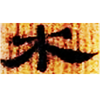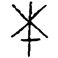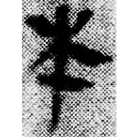 Depiction of a tree. Initially it was used for both words {木} and {生}. Later it began to be used only for {木}.