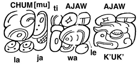 CHUM-la-ja ti-AJAW-wa-le K’UK’-AJAW*